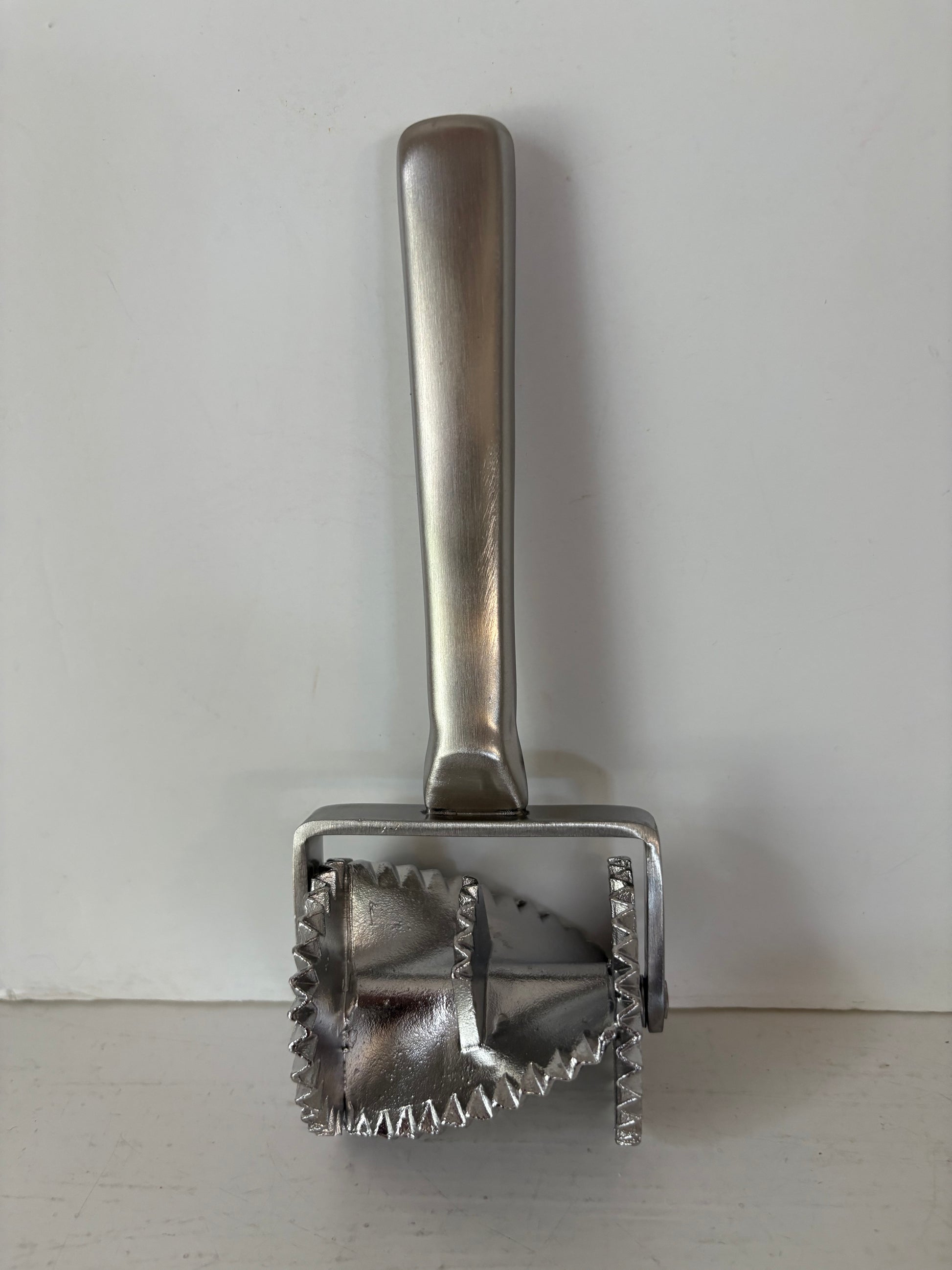 This roller/cutter will help you make the perfect size fattigmann. Dip it in flour before you roll in on the dough to prevent sticking. A real helper during the busy Christmas baking season.