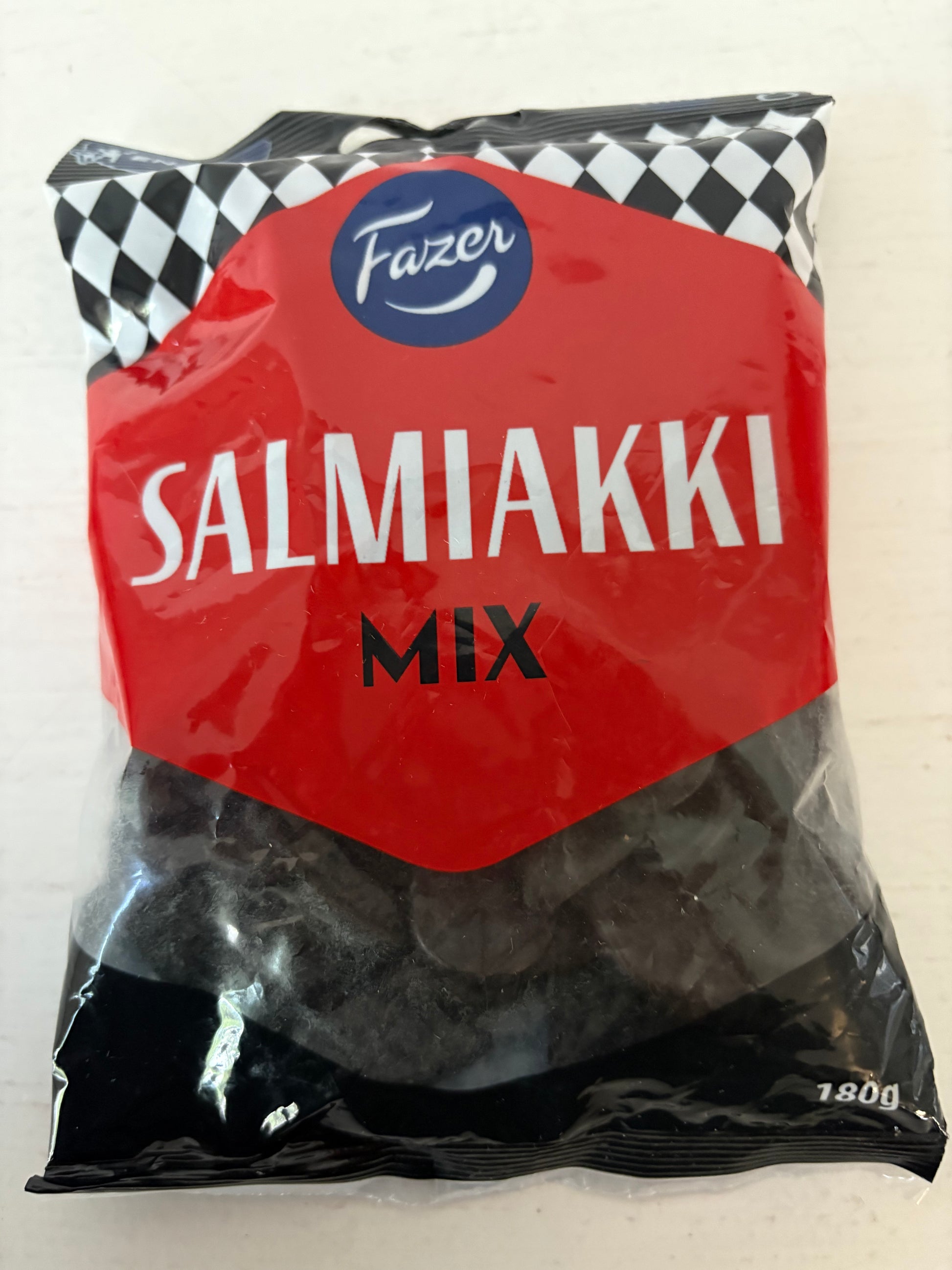 Salmiakki mix of different shaped licorices. Each package contains 180 grams.