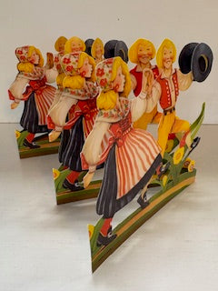 A pull-out featuring dancers in Swedish costumes. Each is about 5 inch tall and 5 inches wide with about 6 folds.