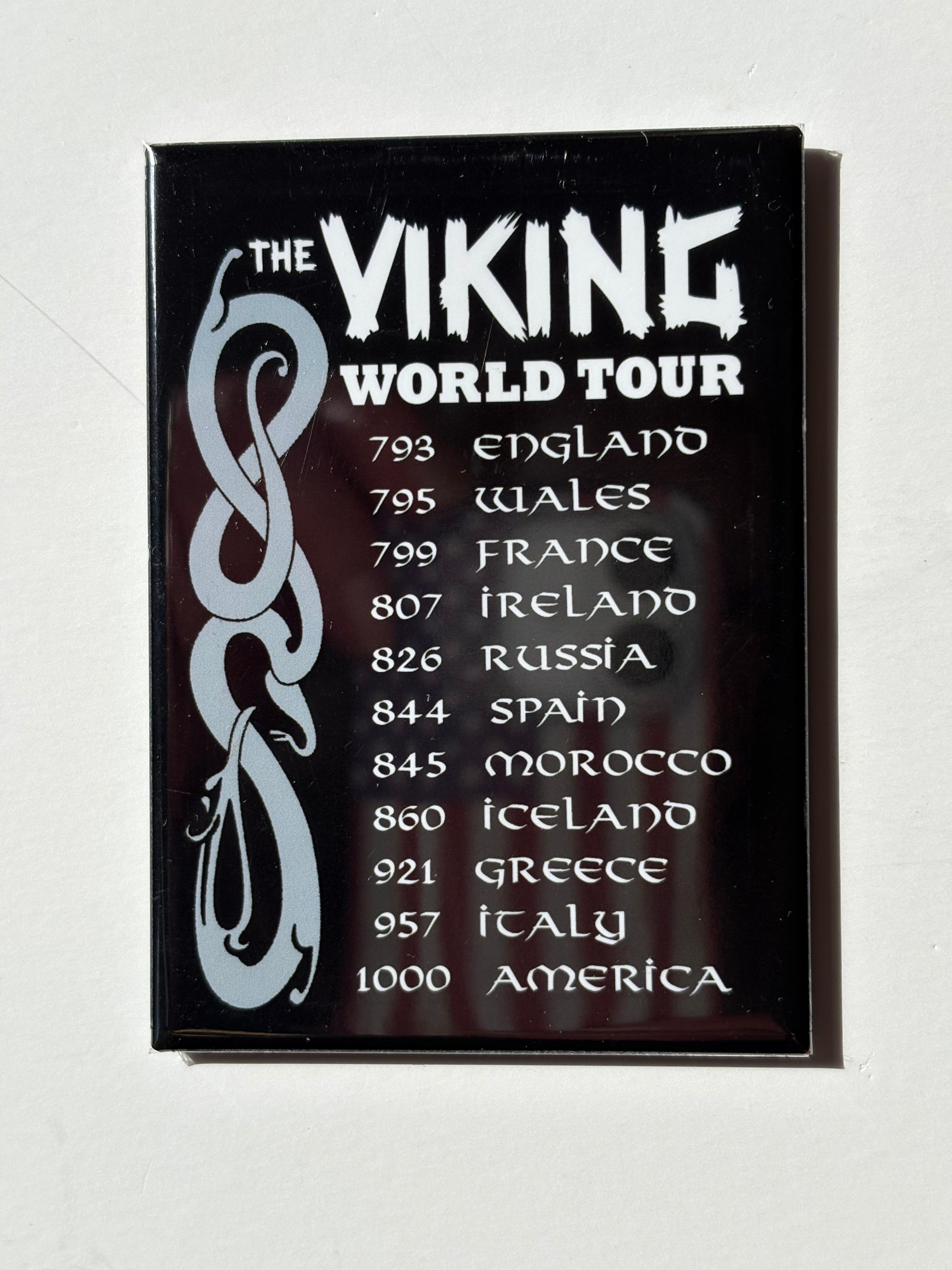31/2" tall X 2 1/2" wide. World Tour Viking magnet.